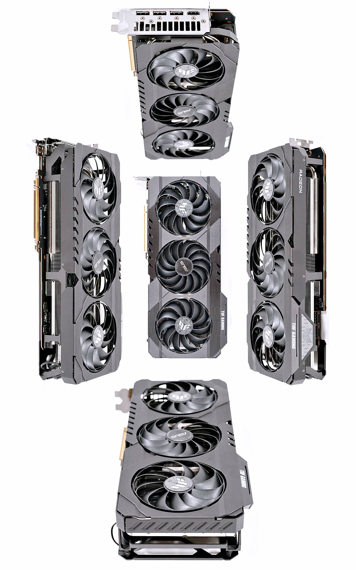 라데온 RX 6900XT의 경우 RTX 3080Ti 보다 530 MHz 더 빠른 GPU 클럭 속도, 111.7 Gpixel/s 더 높은 픽셀 속도, 812 MHz 더 빠른 메모리 클럭 속도, 50W 더 낮은 TDP, 4GB 더 많은 메모리, 580 MHz 더 빠른 GPU 터보 속도를 갖추고 있다.